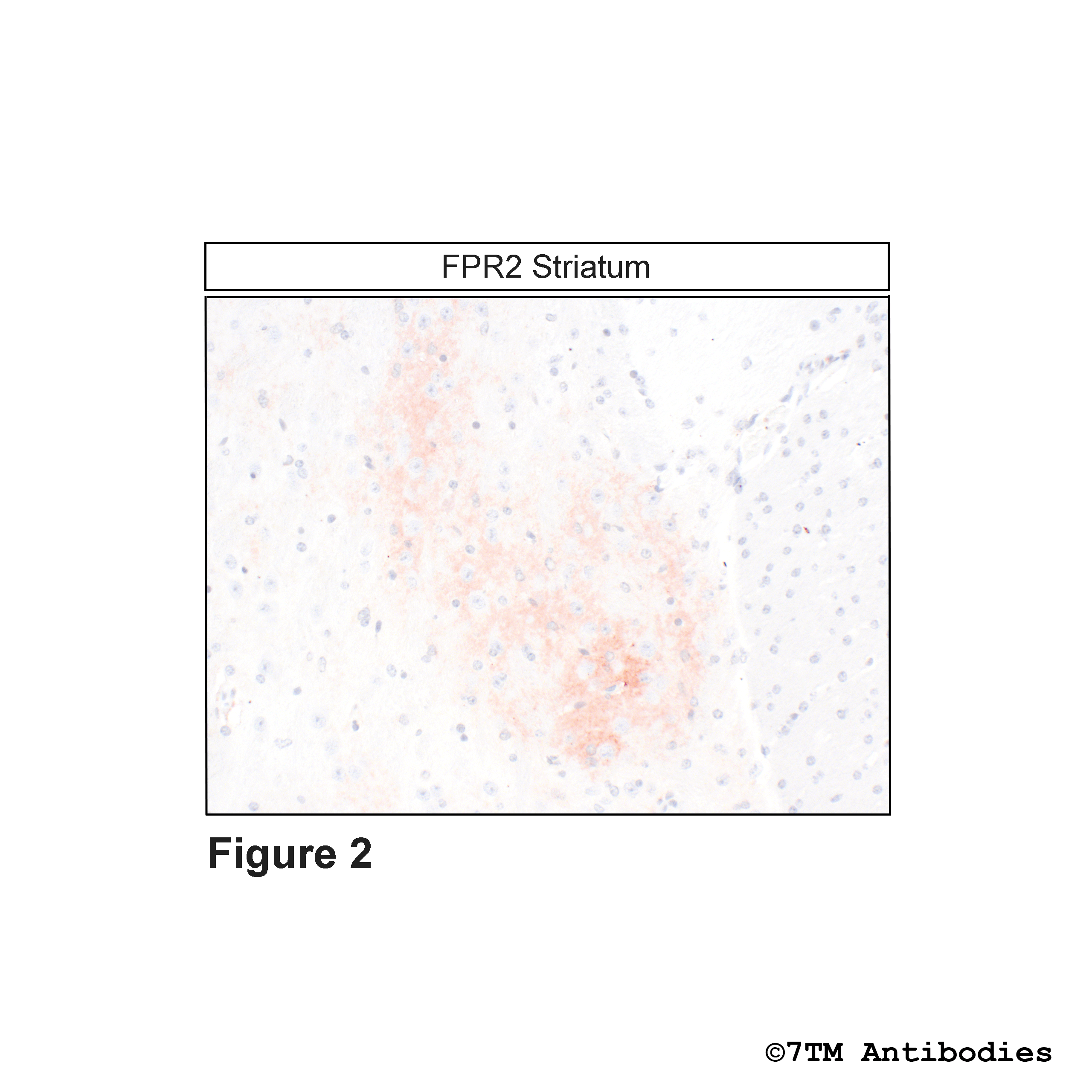 The FPR2 receptor antibody is directed against the distal end of the carboxyl-terminal tail of human Formylpeptide Receptor 2. It can be used to detect total FPR2 receptors in Western blots independent of phosphorylation. The FPR2 antibody can also be used to isolate and enrich FPR2 receptors from cell and tissue lysates.