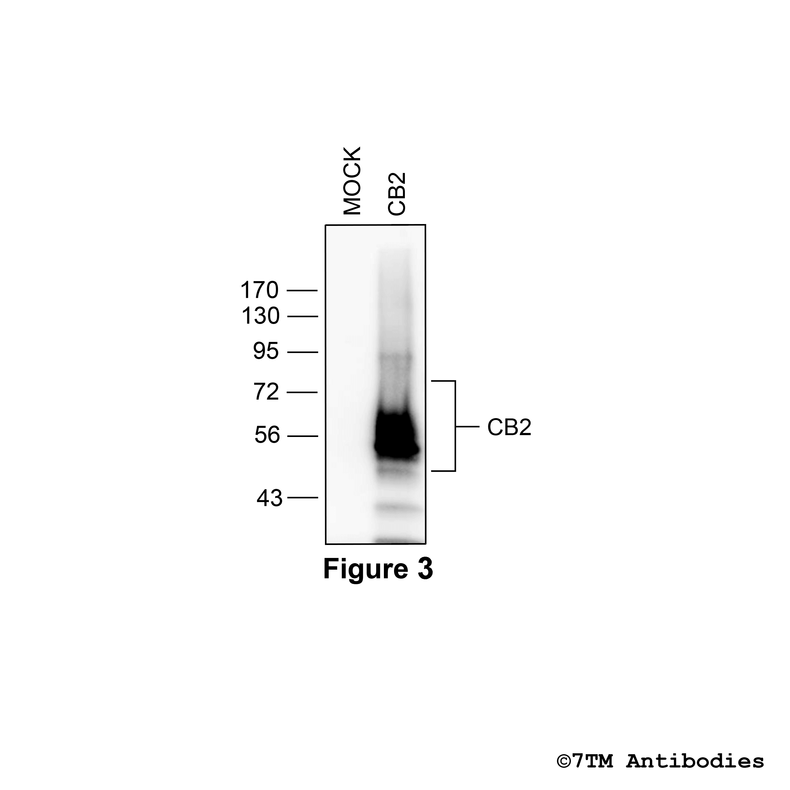 The non-phospho-CB2 receptor antibody is directed against the distal end of the carboxyl-terminal tail of human CB2. It can be used to detect total CB2 receptors in Western blots independent of phosphorylation. The CB2 antibody can also be used to isolate and enrich CB2 receptors from tissue lysates. It also detects CB2 in cultured cells and tissue sections by immunohistochemistry.
